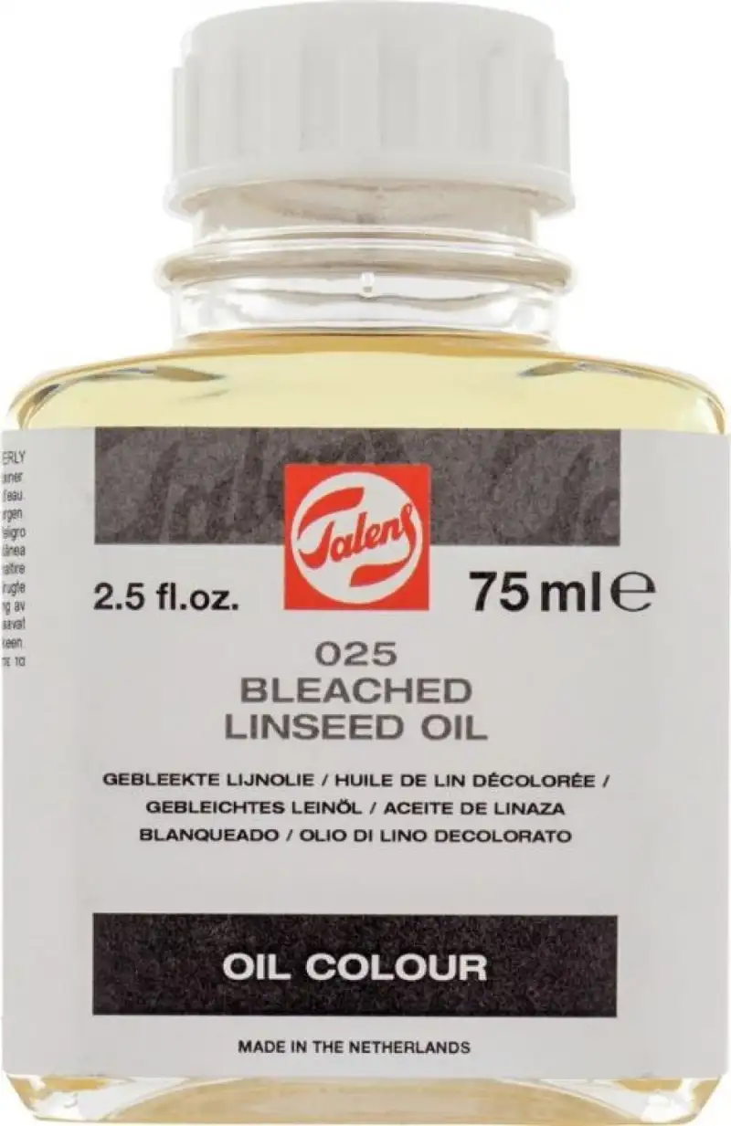 Reduce la consistencia de la pintura > aumenta su fluidez y difumina la pincelada. Puede usarse para preparar uno mismo el medio para pintar. Objetivo realización propia de la pintura y de medio. Composición aceite de linaza. Aumenta el brillo y el tiempo de secado de la película de pintura. Aumenta la posibilidad de formación de arrugas. En ambientes oscuros > amarillea menos que ela ceite de linaza purificado > el amarilleo desaparece en gran parte a la luz del dia. Diluible con white spirit o trementina.