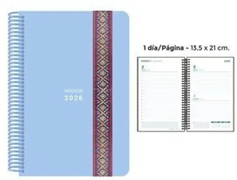 AGENDA ANUAL ESPIRAL 2026 PP PASTEL AZUL GOMA DECORADA 4º