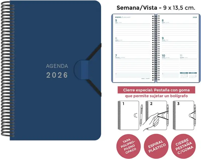 AGENDA ESPIRAL 2026 9X14 SV PP AZUL OSCURO