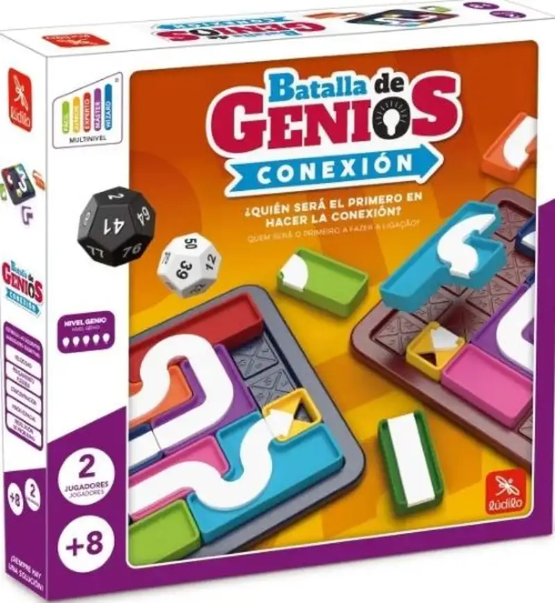 Batalla de Genios Conexión es un juego de mesa en el que, a modo de duelo, tendréis que resolver infinitos desafías colocando las piezas en el tablero. ¿Quién será el primero en encontrar el camino correcto?