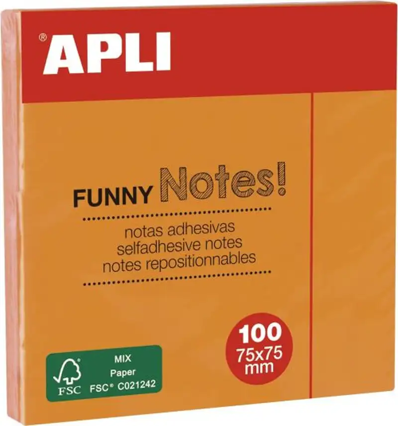 BLOC 100 NOTAS ADHESIVAS 75X75MM NARANJA APLI