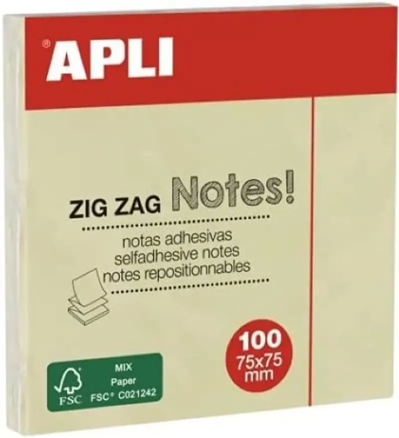 BLOC 100 NOTAS ADHESIVAS ZIGZAG AMARILLAS 75X75MM