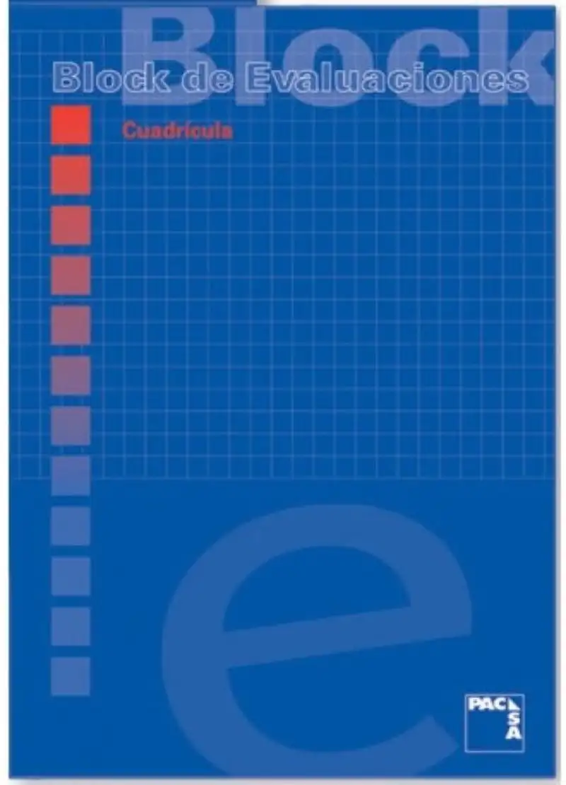 Bloc de Examen con formato A4 y 50 hojas con cuadrícula de 4×4. La cubierta es de cartulina y la contracubierta de cartón