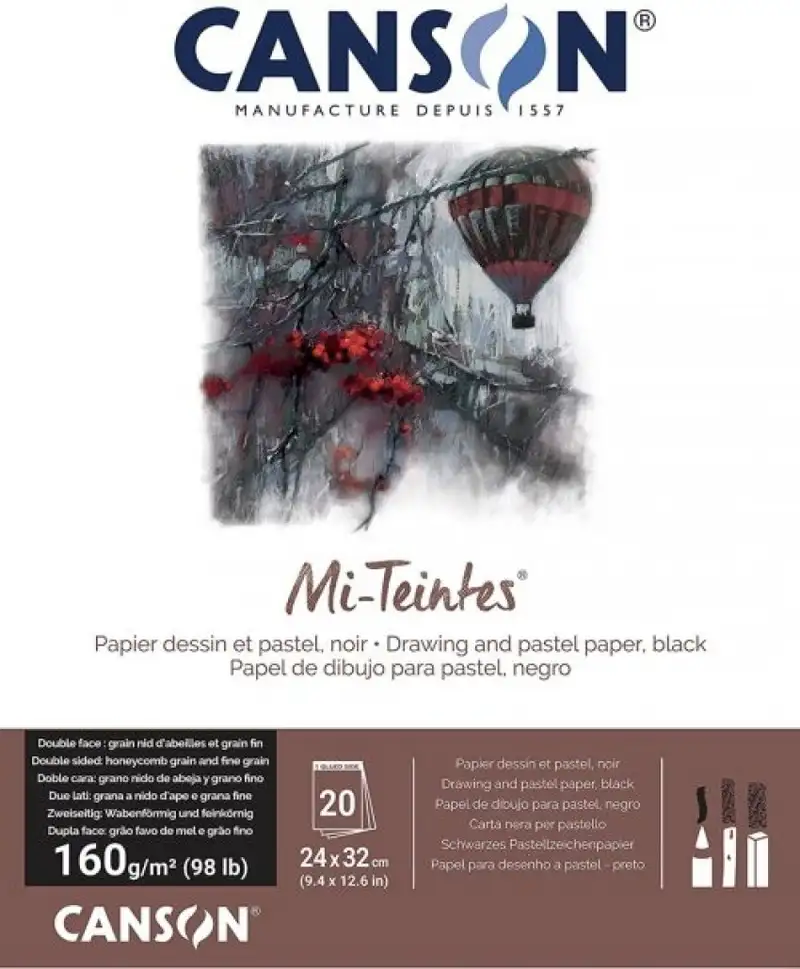 BLOC ENCOLADO CANSON MI-TEINTES 24X32CM 30H 160G NEGRO