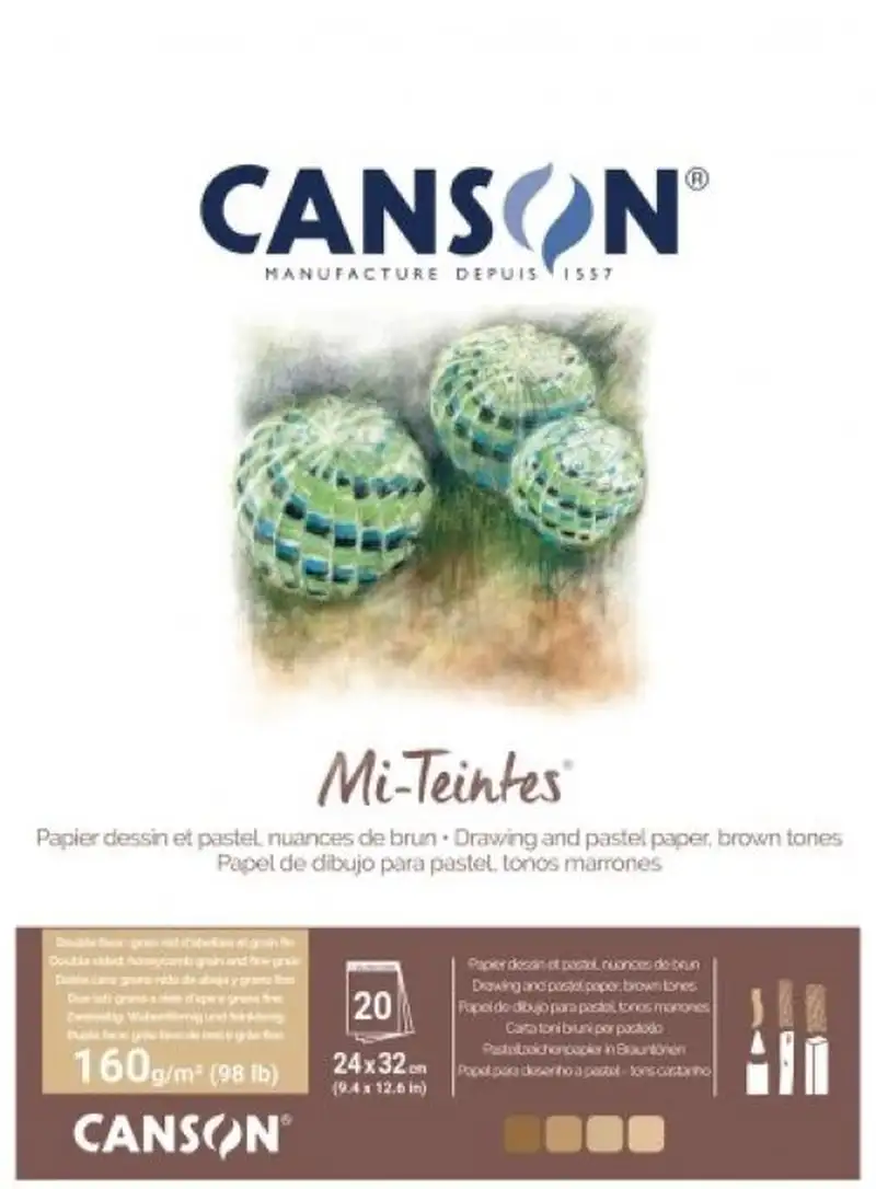 Papel de dibujo Canson Mi-teintes con un 65% de algodón > gelatinado > de grano en nido de abeja en una cara y grano fino en la otra. Papel libre de ácido a excepción del negro. Ideal para pastel > lápiz > acuarela > lavis > gouache > serigrafia e impresión publicitaria. Coloreado en masa > cumple con la norma de permanencia ISO 9706 > prueba de su excelente conservación a lo largo del tiempo. Otra ventaja es que tiene dos caras de textura diferente > una de grano alveolado de nido de abeja y otra de grano más fino. También es ideal para actividades manuales (plegado > corte > collage > tarjeteria etc.).