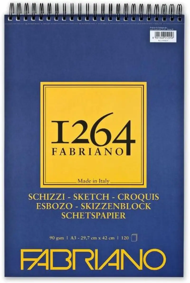 El papel para esbozo Fabriano 1264 tiene una superficie de un tono ligeramente márfil con un ligero grano. El papel proporciona una sensación de mayor espesor con respecto a su gramaje. Permite realizar bocetos reales extremadamente refinados. Hojas microperforadas en los blocs con espiral.