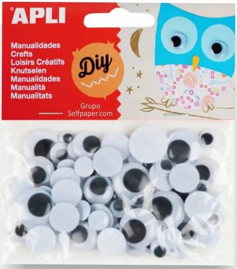 Ojos móviles negros. Producto ideal para realizar todo tipo de manualidades. 75 unidades en 4 tamaños:-10 unidades de 20 mm20 unidades de 15 mm25 unidades de 10 mm20 unidades de 8 mm
