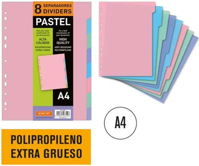 BOLSA SEPARADORES A4 EXTRA-FUERTE 8 PESTAÑAS PASTEL MULTITA