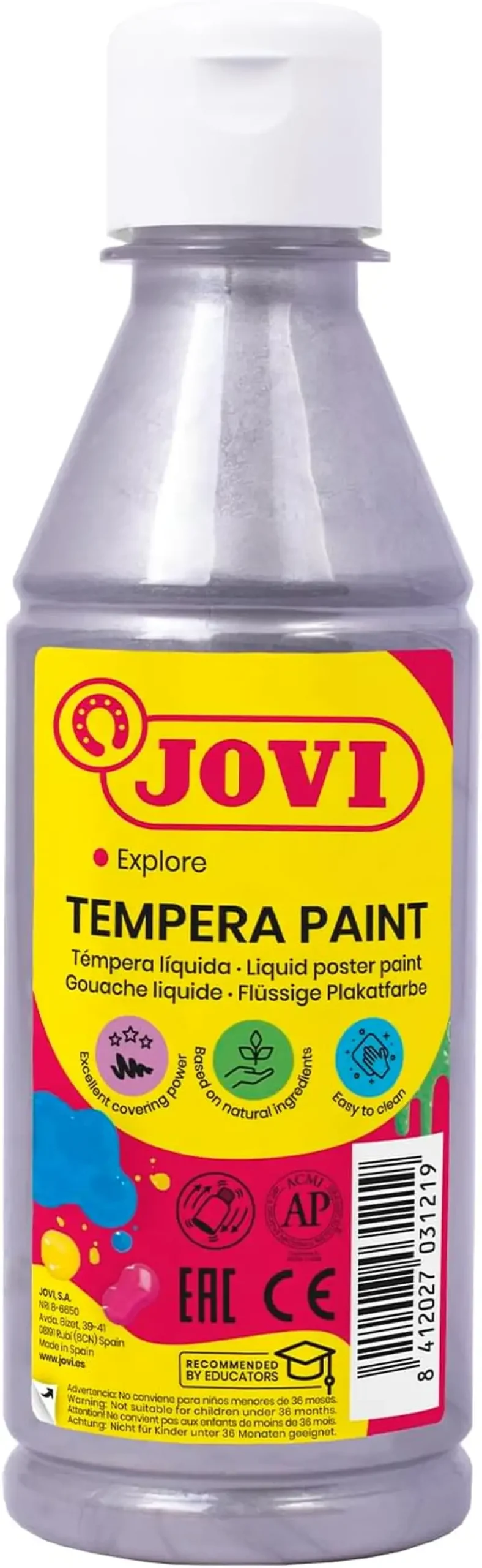 BOTE TEMPERA LIQUIDA JOVI 250ML METALIC PLATA