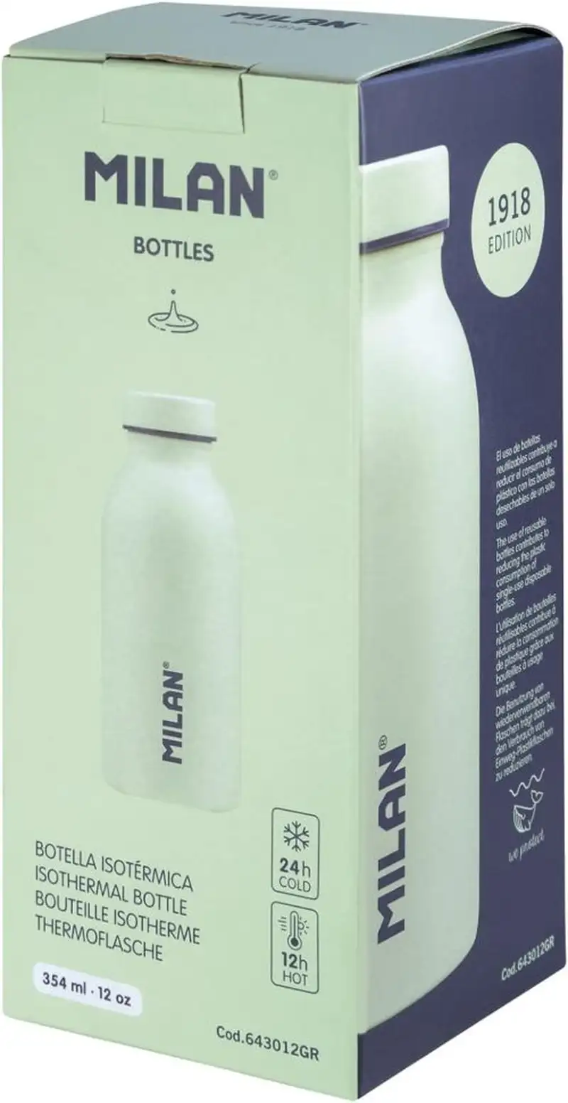BOTELLA ISOTERMICA 354ML MILAN 1918 17,1X6,85CM VERDE