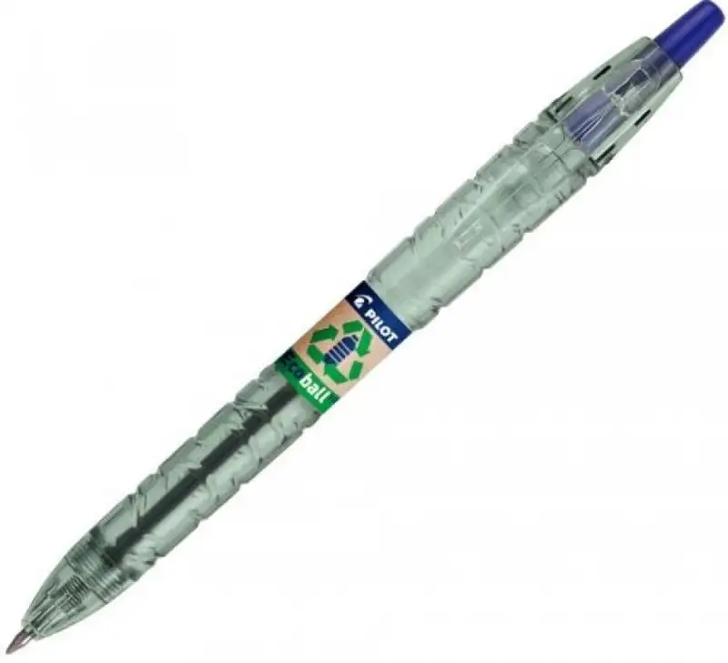 Bolígrafo tinta base de aceite de 1.0 mm. Retráctil. Recargable. Realizado con materiales reciclados en un 86% principalmente de botellas recuperadas de mares y océanos. Con un diseño similar a una botella de plástico. Grip de agarre de gran suavidad que permite una increible sensacion de escritura.