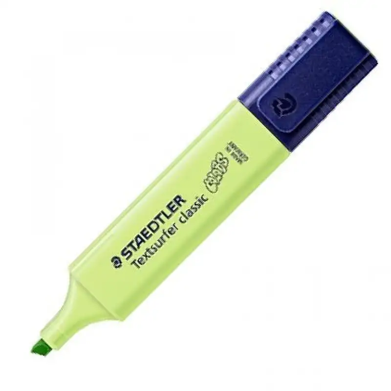 Marcador fluorescente colores pastel con tinta pigmentada > para resaltar textos sobre cualquier soporte: paper + copy + fax. Secado rápido > tinta base agua fácilmente lavable en la mayoría de tejidos > con clip > capuchón giratorio para destapar más fácilmente > cuerpo y capuchón de polipropileno (PP). Punta biselada suave 1-5 mm aprox.