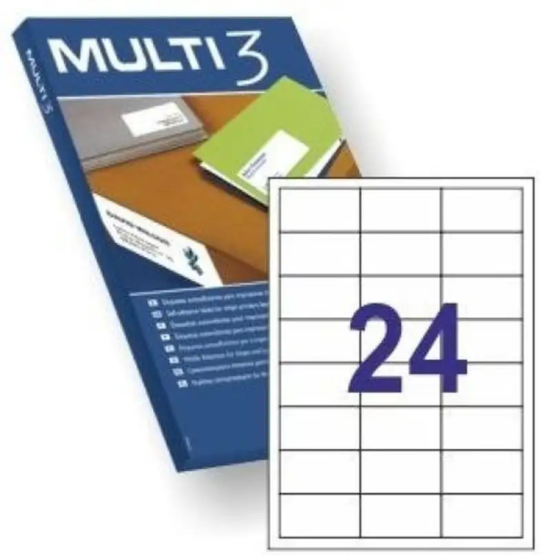 C/100 HOJAS ETIQUETAS FT/IM 64,6X33,8 MULTI3 CANTOS RECTOS