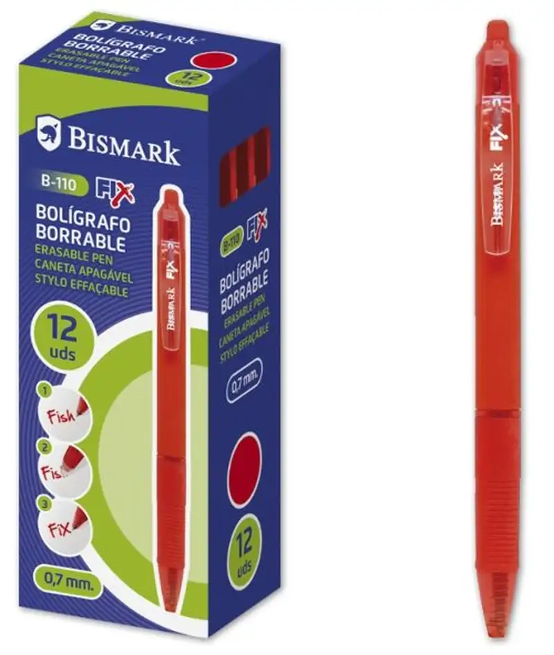 C/12 BOLIGRAFO BISMARK BORRABLE ROJO PUNTA 0,7MM RETRACTIL