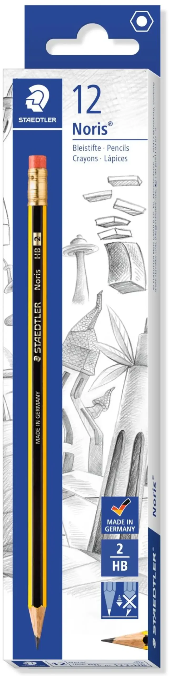 Staedtler Noris 120 lápiz con goma de borrar Fabricado de madera de cedro de las áreas de reforestación controlados proceso de fabricación respetuoso del medio ambiente No hay metales pesados ??tóxicos se utilizan para el grado punta del borrador de pic HB: 12 ??Paquete Peso: 0.064 kg Paquete Dimensiones: 50x190x20 mm