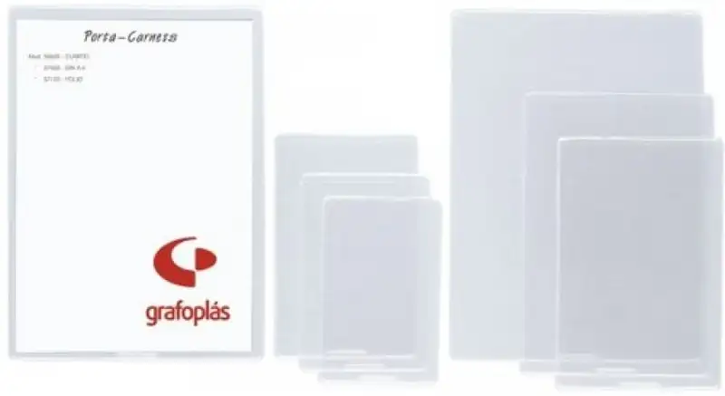 Fundas portacarnets en PVC de 100 µ y 150 µ. Con uñero para facilitar la extracción de documentos. Con medidas muy variadas que seguro se adaptan a sus necesiddades: Desde 325x225mm (folio) hasta 108x66mm.