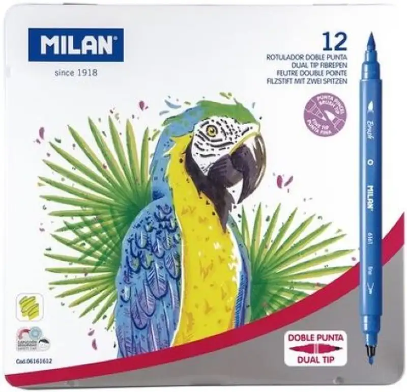 CAJA METALICA 12 ROTULADORES DOBLE PUNTA FINA/PINCEL
