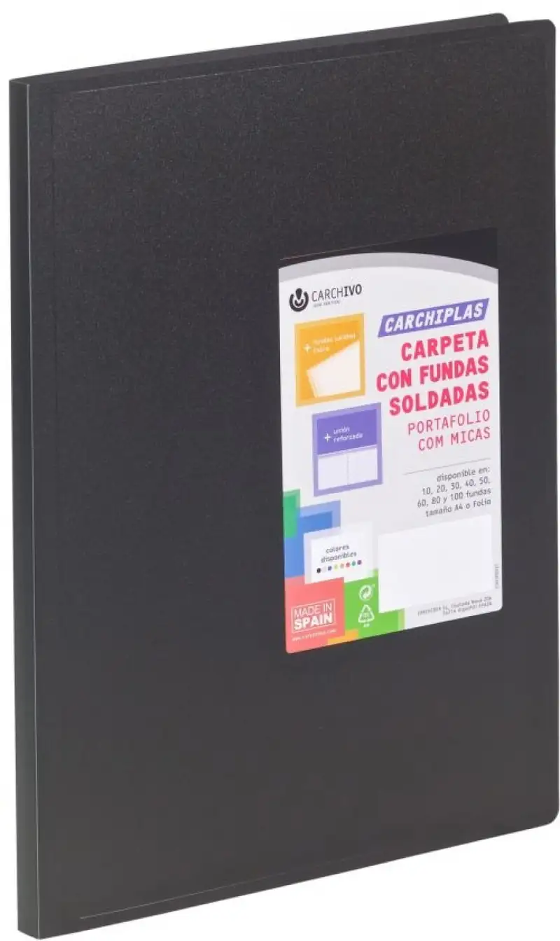 CARPETA 40 FUNDAS A4 TAPA FLEXIBLE NEGRO CARCHIPLAS