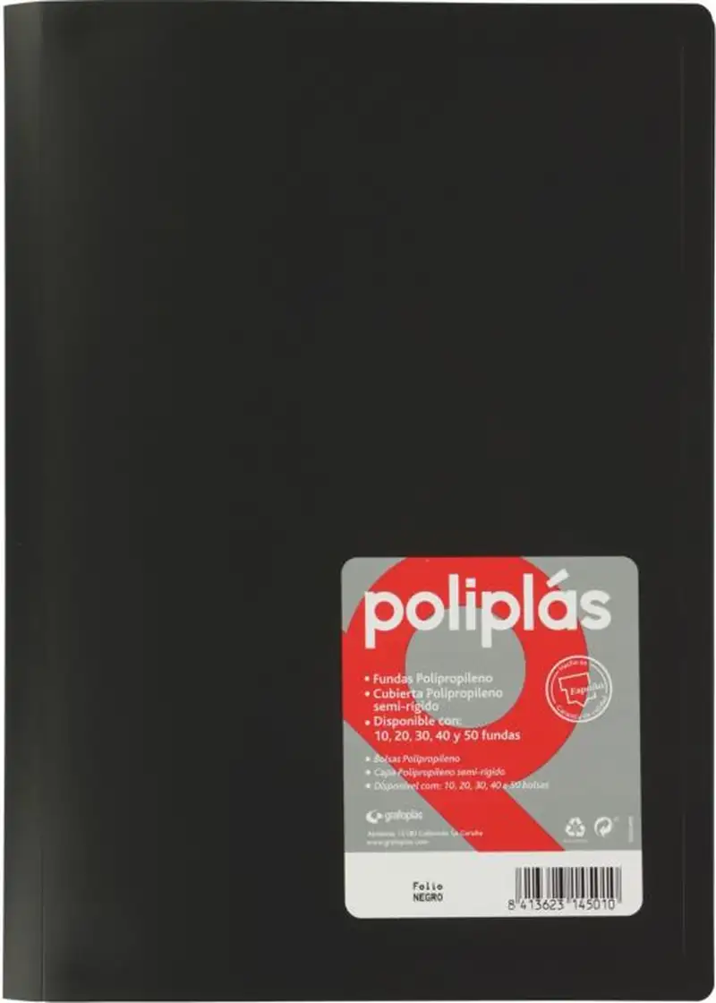 CARPETA Fº 40 FUNDAS SOLDADAS OPACAS NEGRO POLIPLAS