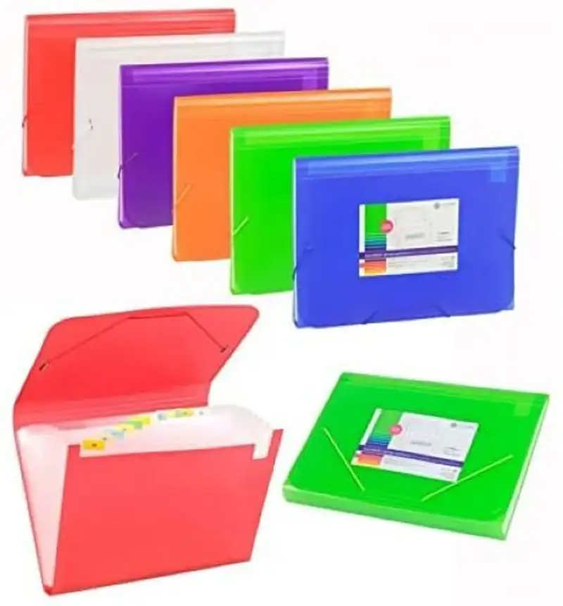 Carpeta acordeón fabricada en polipropileno translúcido. 13 departamentos. Tamaño folio.