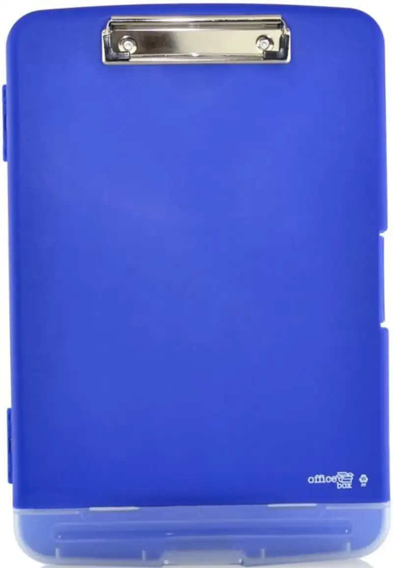 Plástico muy rígido con pinza exterior metálica sujeta papeles en la parte superior y protectores de papel. 2 Apartados con cierre de click: · Apartado principal: para documentos > cuadernos > libros > etc. · Apartado inferior en semi-transparente: para útiles de escritura. Ergonómico y muy resistente.