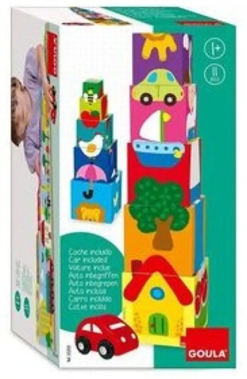Apila los diferentes cubos siguiendo sus secuencias. Contiene 5 ilustraciones diferentes muy vistosas y de vivos colores. Incluimos un coche de madera que aparece en una de las ilustraciones. Juego de equilibrios. Habilidad manual aprendizaje diferentes figuras y escenas –