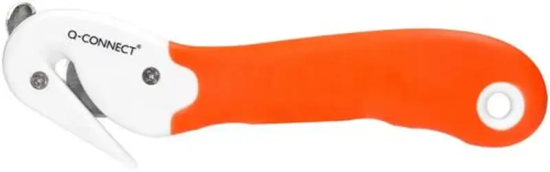 Cuter q-connect combi de seguridad sx782n-1 con cuchilla fija oculta para evitar cortes. Cúter de seguridad con cuchilla fija oculta para evitar cortes al abrir cajas > precintos y flejes. Hoja de acero inoxidable y cuerpo de plástico. Incluye una lengüeta metálica integrada para cortar los precintos adhesivos de las cajas de cartón. Longitud: 190 mm.
