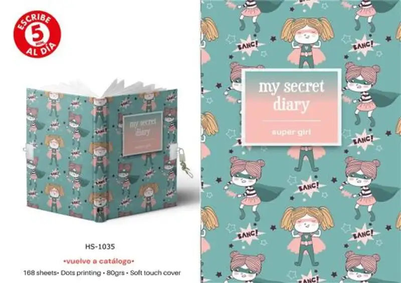 DIARIO A5 CON CANDADO MODELO SUPER GIRL 168H.
