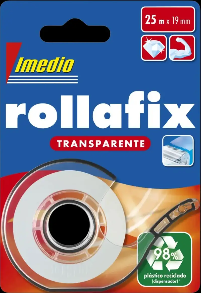 DISPENSADOR CINTA ADHESIVA ROLLAFIX TRANSPARENTE 19MMX25M