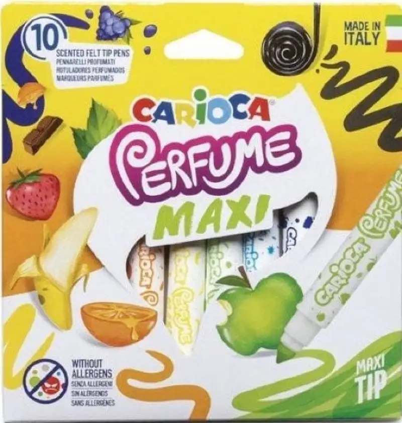 Caja de 10 rotuladores perfumados punta Maxi Tinta perfumada > lavable > libre de sustancias alergénicas los aromas usados han sido seleccionados rigurosamente para evocar las esencias naturales