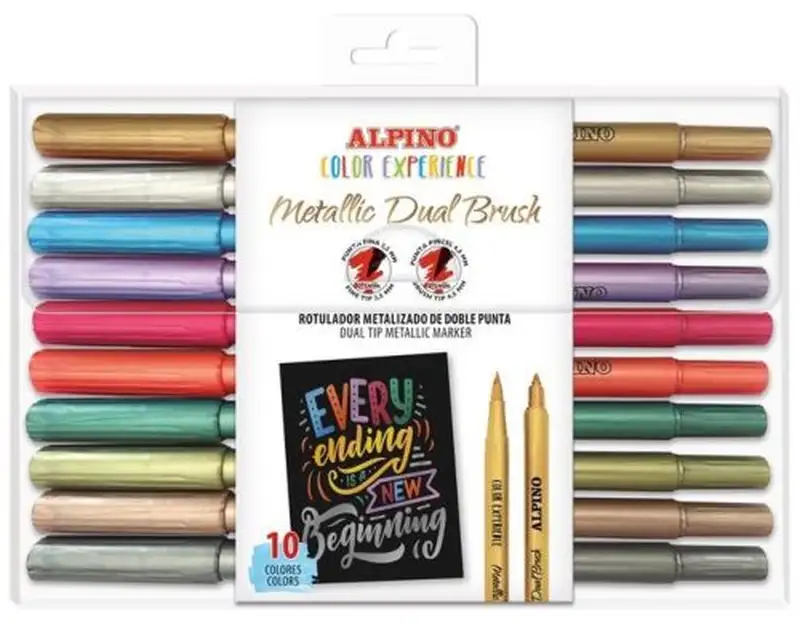 ESTUCHE 10 ROTULADORES DOBLE PUNTA DUAL BRUSH COL. METALICO