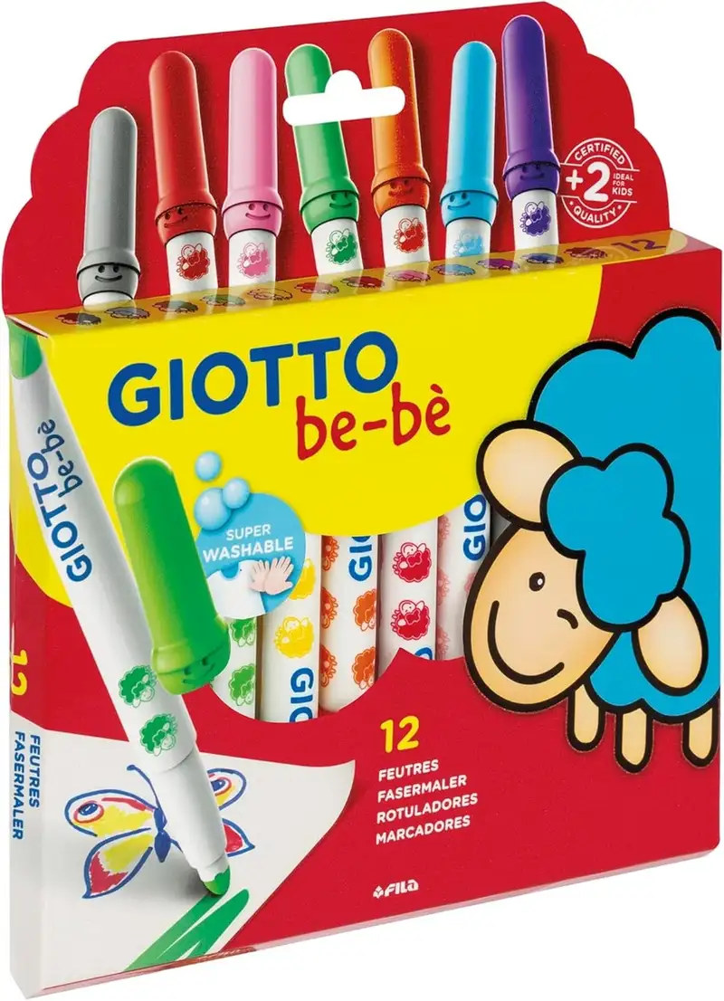Colores seguros diseñados para los pequeños artistas. ¡Con los súper rotuladores Giotto be-bè > su imaginación está 100% segura y colorear no tiene límites! Más cortitos > fáciles de sujetar > irrompibles > no tóxicos > extremadamente sencillos de limpiar de manos y tejidos y testados dermatológicamente. No tiene partes removibles. Protección total gracias al capuchón ventilado anti ahogo y punta bloqueada > perfecto para los aventureros y pequeños artistas.