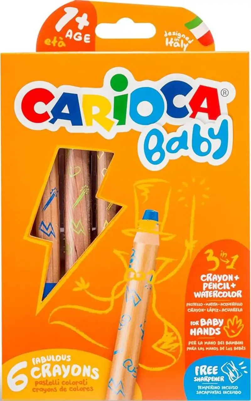 ESTUCHE 6 LAPICES CARIOCA BABY 1+ 3 EN 1 COLORES SURTIDOS