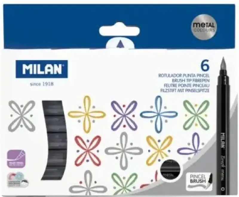 ESTUCHE 6 ROTULADORES PUNTA PINCEL COLORES METALIZADOS