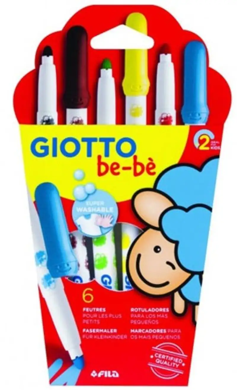 Colores seguros diseñados para los pequeños artistas. ¡Con los súper rotuladores Giotto be-bè > su imaginación está 100% segura y colorear no tiene límites! Más cortitos > fáciles de sujetar > irrompibles > no tóxicos > extremadamente sencillos de limpiar de manos y tejidos y testados dermatológicamente. No tiene partes removibles. Protección total gracias al capuchón ventilado anti ahogo y punta bloqueada > perfecto para los aventureros y pequeños artistas.