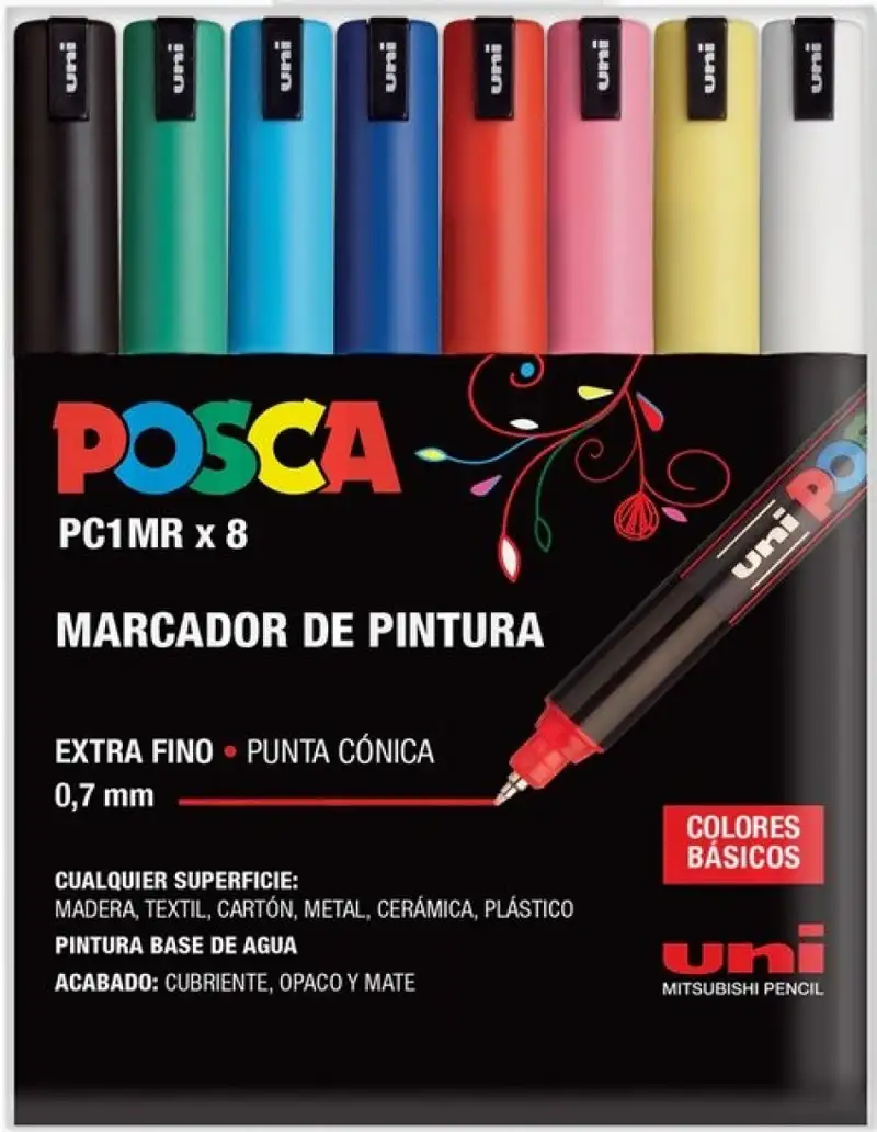 ESTUCHE 8 ROTULADORES POSCA PC1MR UNI-BALL COLORES SURTIDOS