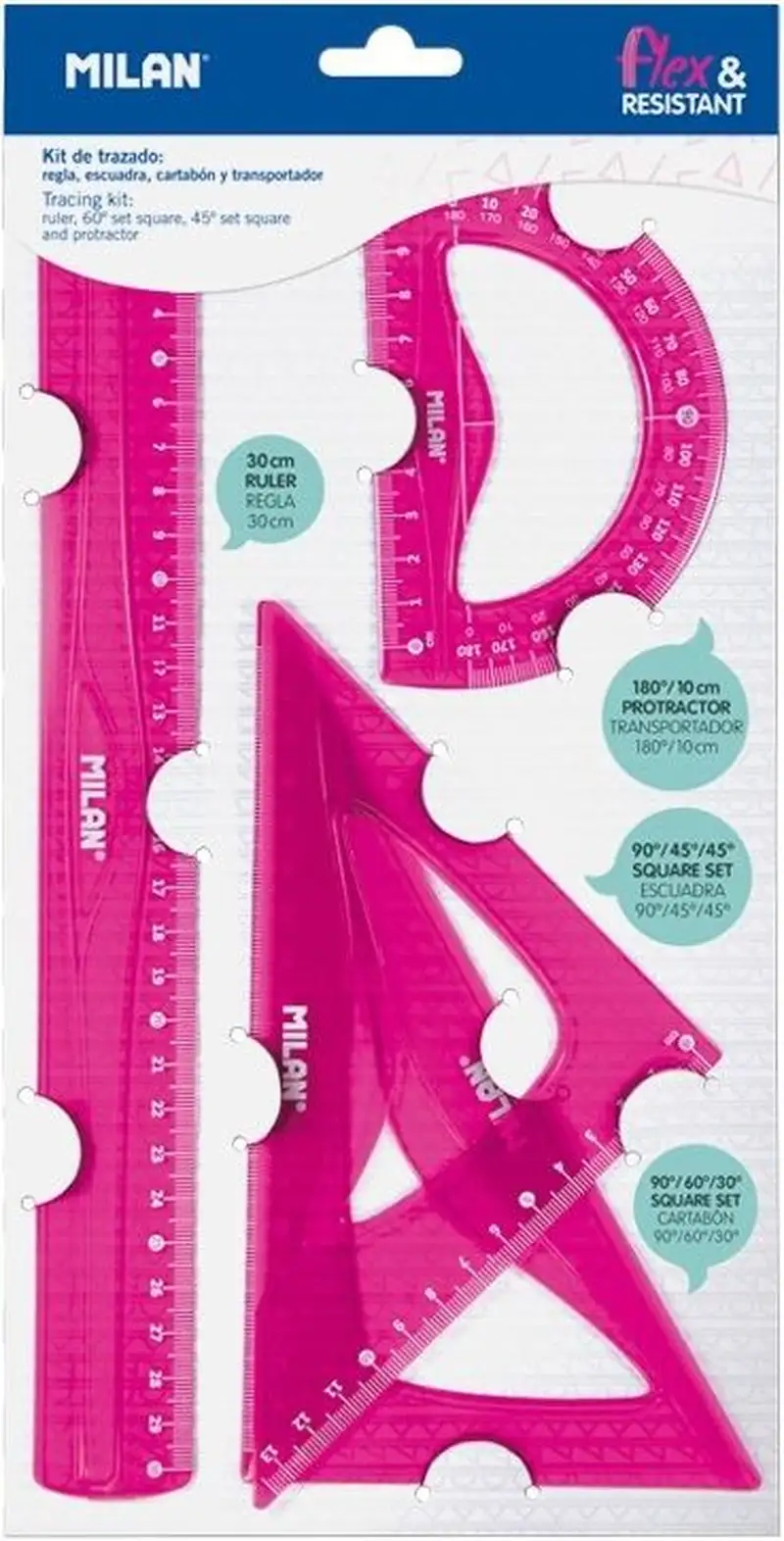 ESTUCHE DE DIBUJO FLEXIBLE 4 PIEZAS 30CM ROSA