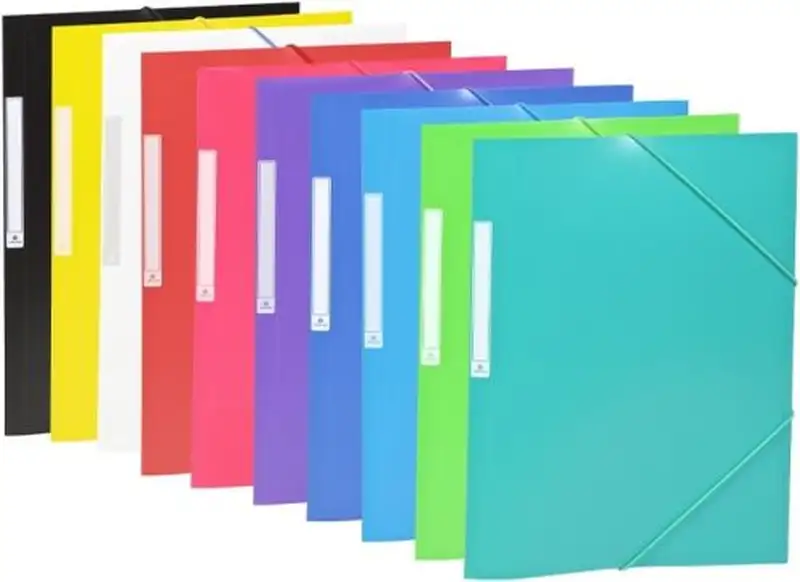 EXP 50 CARPETAS Fº GOMAS SOLAPAS PP OPACO C/ETIQUETA SURT.
