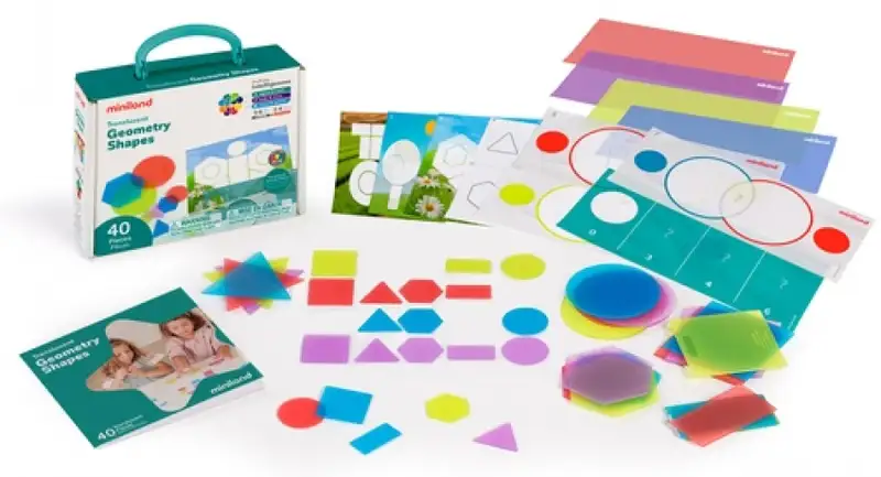 Este set de 40 formas geométricas realizadas en plástico translúcido permite a los niños y niñas experimentar y descubrir formas, tamaños, colores y patrones;lo que les ayudará a familiarizarse con el mundo de la geometría desde muy pequeños. Este recurso educativo es apto para mesas de luz y se acompaña de 8 fichas transparentes de actividades con un nivel de dificultad creciente y de un folleto explicativo con propuestas de juego.