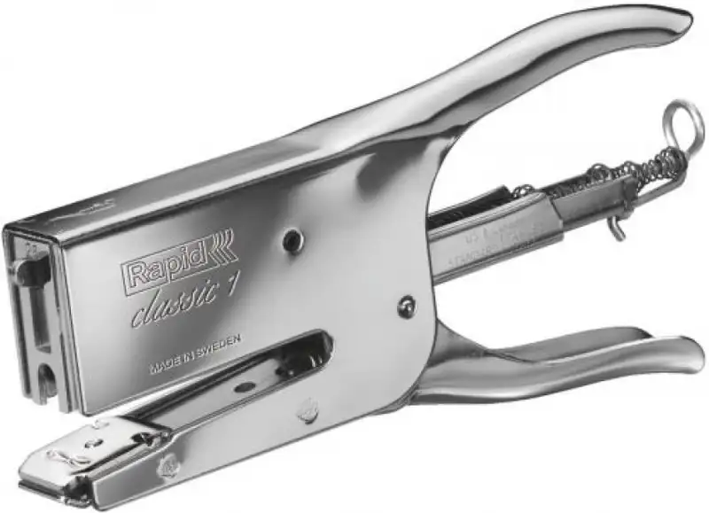 Grapadora de tenaza en famoso diseño clásico con acabado cromado mate Platinum y yunque ajustable para grapar y clavar. Con el acabado cromado mate > resulta menos resbaladiza y se acabaron las huellas. Ideal para servicios postales > tiendas > almacenes > oficinas y uso doméstico.