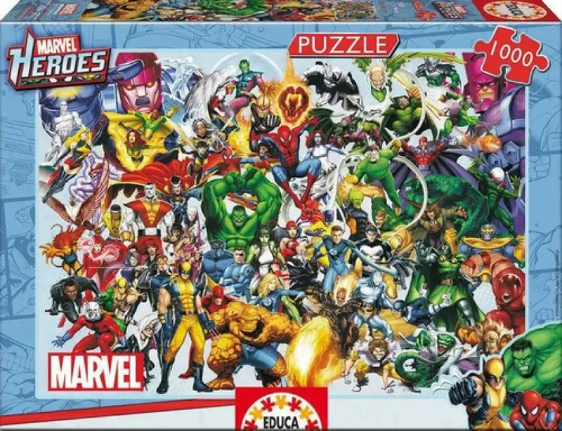 En este puzle de 1000 piezas encontrarás a todos los héroes de Marvel. Incluye adhesivo para pegar el rompecabezas una vez acabado.