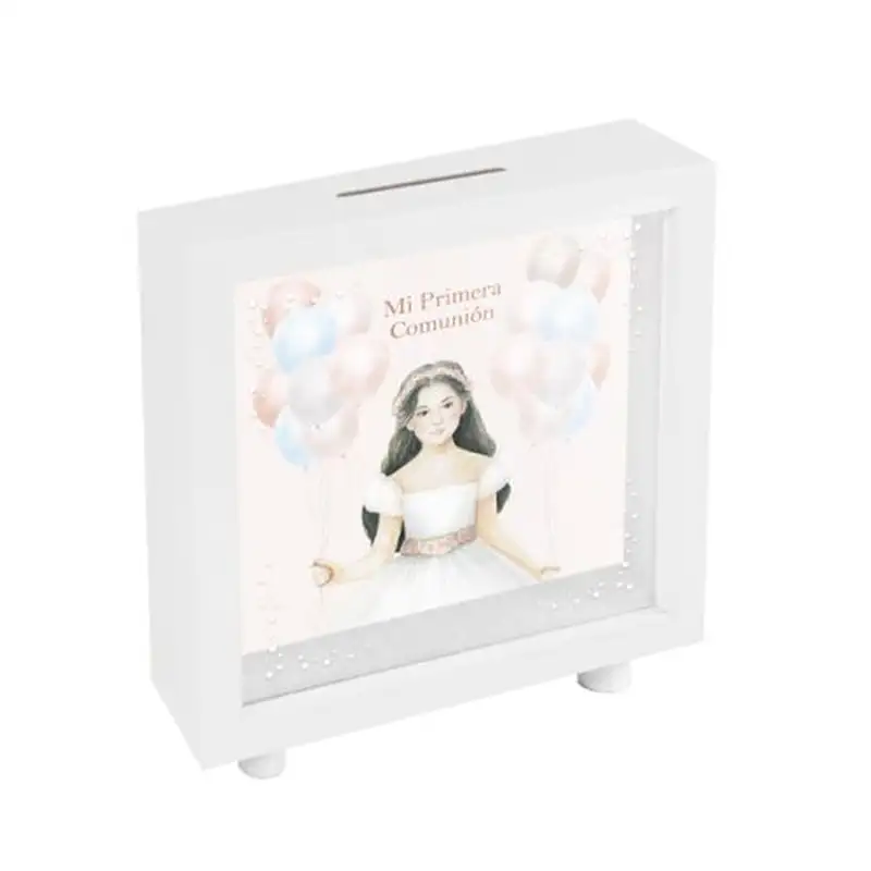 HUCHA BLANCA COMUNION NIÑA GLOBOS