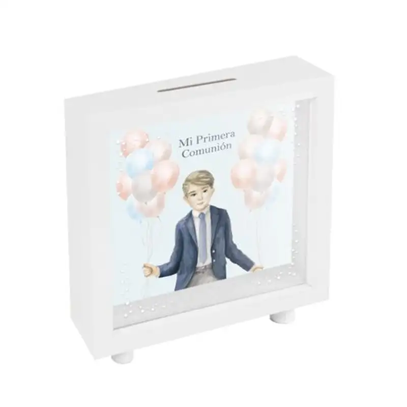 HUCHA BLANCA COMUNION NIÑO GLOBOS