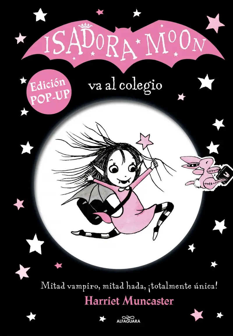 ¡Entra en el mundo de Isadora Moon con este libro POP UP! Verás cómo las ilustraciones de esta aventura cobran vida gracias a solapas y desplegables. Isadora Moon es especial porque es diferente. Su mamá es un hada, su papá un vampiro y ella tiene un poquito de los dos. Le encanta la noche, los murciélagos y su tutú negro de ballet, pero también la luz del sol, las varitas mágicas y su conejo rosa Pinky. Cuando llega el momento de empezar el colegio, Isadora no sabe a cuál debe ir: ¿al de hadas o al de vampiros