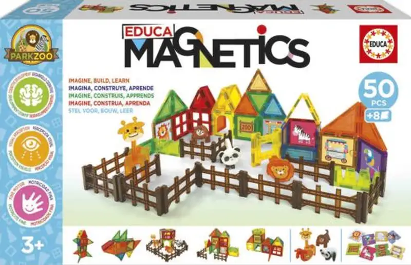 Los niños pueden construir construcciones tanto en 2D como en 3D, dando rienda suelta a su imaginación y creatividad. Gracias a sus colores, formas y facilidad de manejo, pueden construir un sinfín de construcciones (figuras planas, animales, flores, vehículos, torres, castillos, etc.). Las piezas cuentan con refuerzos internos e imanes potentes y gruesos que permiten una unión sólida, proporcionando la máxima estabilidad a las construcciones. Los lados nunca se repelen.