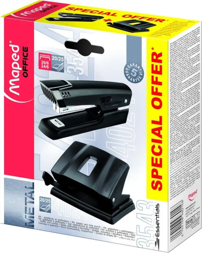 Contenido: 1 Grapadora Half strip essentials. 1 Perforadoras essentials 20/25 hojas.