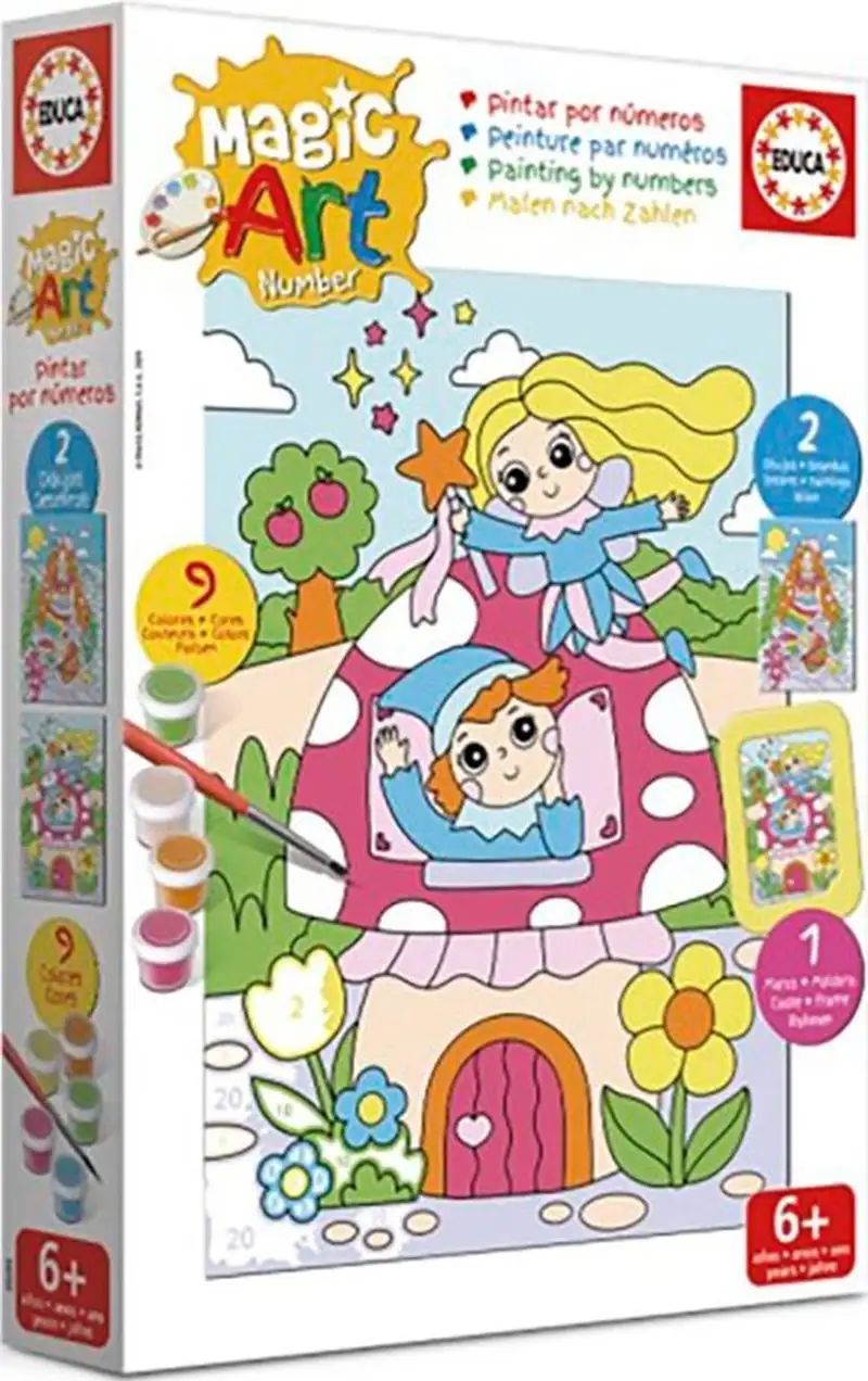 ¡Diviértete pintando por números! Este set está especialmente diseñado para niños. Cada área de la imagen tiene un número que indica qué color usar: ¡es facilísimo! Una actividad creativa que ayuda a desarrollar la concentración, la coordinación y el reconocimiento de colores, todo mientras te diviertes. Incluye todo lo necesario para empezar: un tablero numerado, pinturas y un pincel.