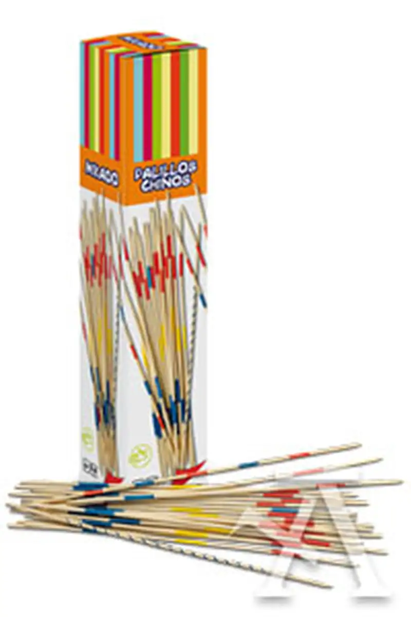 El juego de los palillos chinos es un juego de destreza y habilidad con el movimiento de la mano. Se sueltan los palillos sobre una superficie y hay qye ir retirando los palillos uno a uno sin mover el resto. Además cada palillo tiene una puntuación distinta, no creas que por tener más palillos ya has ganado!El juego consta de 26 palillos de madera de bambú de 0,5 cm de diámetro por 30 cm de largo, y viene presentado en una caja de cartón.