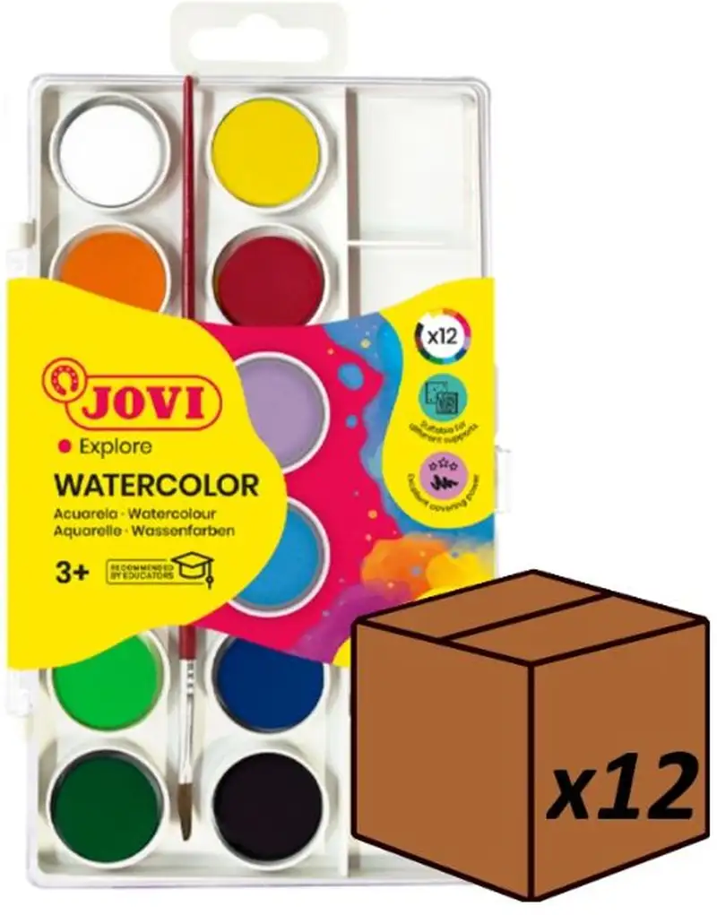 (PACK 12U.) ESTUCHE PLASTICO 12 ACUARELAS JOVI COLORES SURT