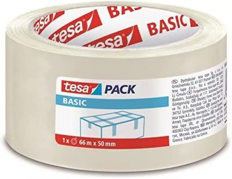 Cinta de embalaje sólida para un cierre seguro de embalajes. Soporte en PP. Adhesivo sin disolventes. Fácil desbobinado (ruidoso). Cinta de embalaje polipropileno 66x50mm Tesa Basic transparente